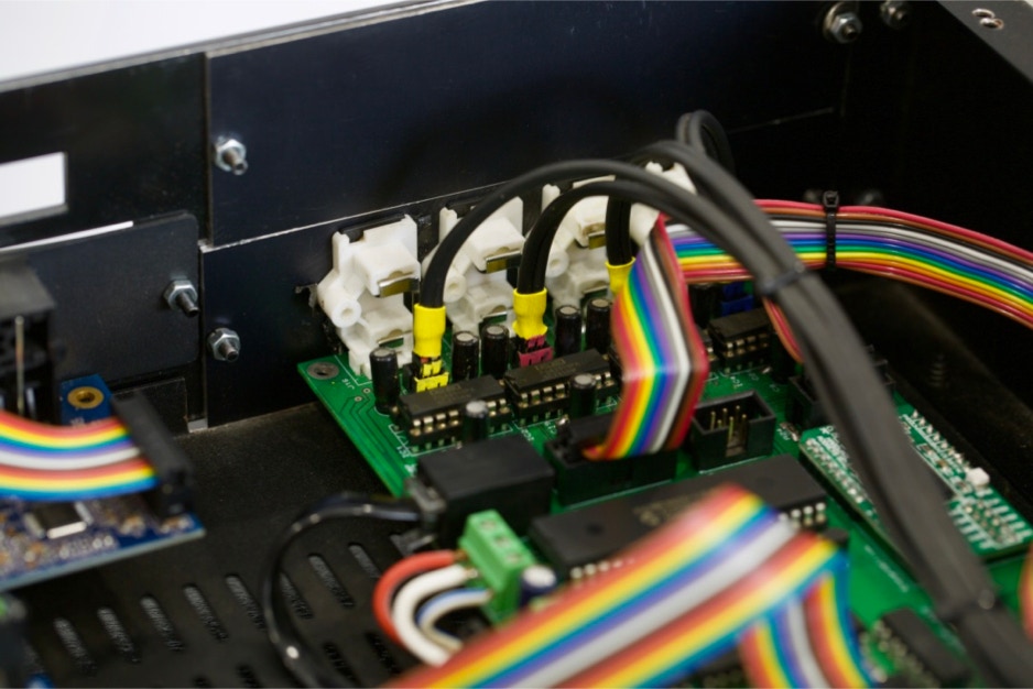 La première particularité de cette carte est qu'elle sera ouverte aux évolutions. Un connecteur permettra l'extension d'autres cartes PGA ou DAC fonctionnant via un port SPI. La seconde est que sur cette carte principale les PGA peuvent recevoir un signal audio interne depuis les DAC ou externe depuis les connecteurs RCA.
