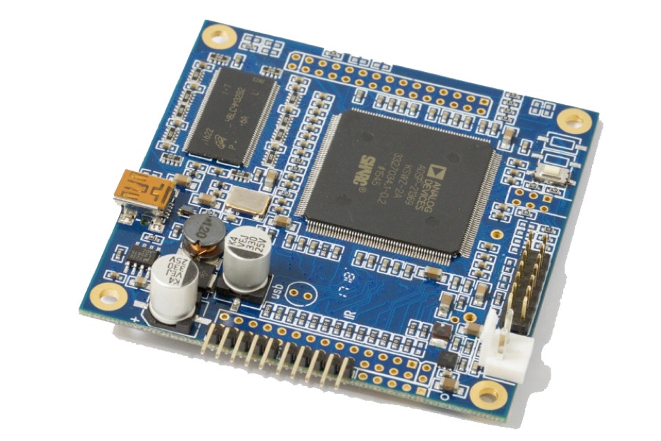 Le coeur du système est donc un DSP. Le module sélectionné est la carte MiniSharc en provenance de la société MiniDSP. Celle ci dispose d'un ADSP 21369 de Analog Device. 32/40 bit à virgule flottante et 2.4 GFlops de puissance de calcul. Il fait partie encore aujourd'hui des meilleurs référence du marché. Cette carte dispose d'une entrée et de 8 sorties au format I2S. Un plugin permet de parametrer toutes les fonction nécessaire via un ordinateur PC ou MAC.