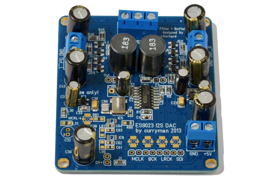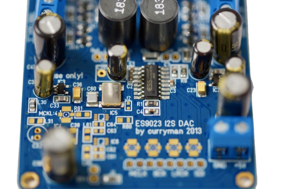 Dans un premier temps et afin de valider que l'ensemble fonctionne correctement il est décidé d'utiliser les DAC fournit par lMiniDSP soient les modules Curryman. Il sagit du DAC SABRE 9018 de la société ESS. Un circuit de très bien noté et qui a le vent en poupe depuis quelques temps dans le monde des audiopliles. Ensuite il sera toujours temps de les remplacer par un modele plus performant. De toutes manières et ecomparant le datasheet cela ne devrait pas pire que les AKM du DCX.