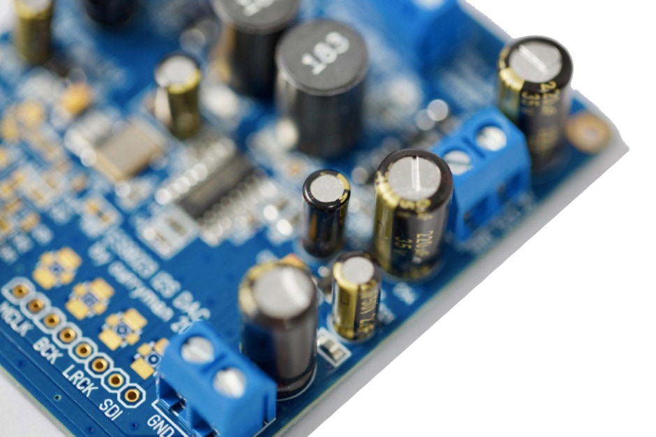 La carte MiniSharc ne disposant que de sorties au format I2S il faut lui adjoindre des convertisseurs numérique/Analogique. Le gros avantage de cette solution est que l'on peut monter n'importe quelle carte DAC au format I2S soit pour ainsi dire presque toutes.