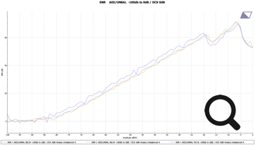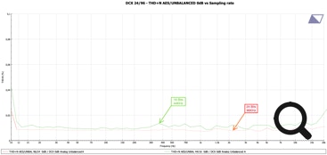 Un essai de THD+N avec différents échantillonnages. On voit que la différence entre un échantillonnage faible 16/44 et 24/96 ne présente peu d’interêt. Cela est du aux limites du DAC.