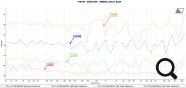Les fonctions numériques du DCX telles que les filtres, retards, égaliseur et autres introduisent des distorsions certes mais d’un niveau tout à fait acceptable. Le réglage des gains est à manipuler avec grande précaution en évitant les gains positifs. Le niveau de saturation des sorties analogiques étant à +0.3dB cela ne nous laisse que très peu de marge. Cependant les gains négatifs évitent toutes saturation mais au détriment de la pleine échelle du signal.