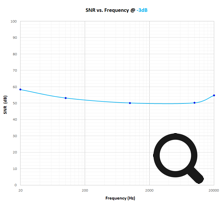 Elle est très modeste avec environs 80dB. On devrait s'attendre à plutôt 100dB. Si on calcul le DNR (Dynamic Range) sans prendre en compte les harmonique nous sont tout de même à plein niveau à environs 120dB ce qui est très acceptable.