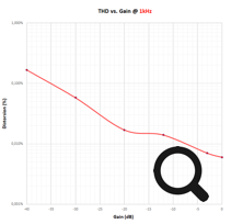 En fonction de la fréquence la distorsion est stable mais augment dès que l’on réduit le gain. En augmentation de gain elle s’envole.
