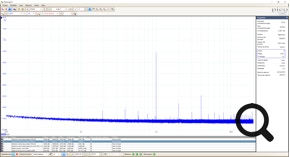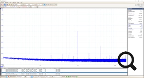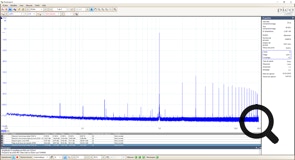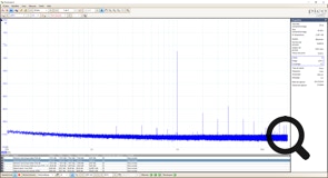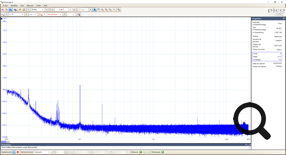 On aperçoit des perturbations aussi bien sur la vue spectrale que sur la persistance qui n’existaient pas sur l’alimentation. On peut en déduire qu’elles proviennent soit de l’ampli lui-même ou peut-être ramené par d’autres organes comme la carte Microcontrôleur ou la régulation des ventilateurs.
