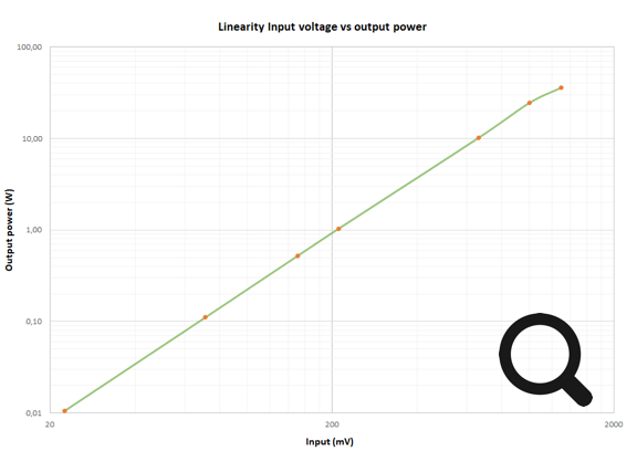 Le rapport entre l’entrée (mV) et la sortie en Watts est très linéaire excepté à l’approche du maximum de la puissance ce qui n’est pas surprenant.