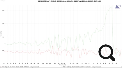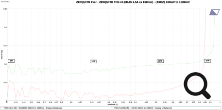 Le courant d’entée du ZENQUITO est stable ce qui est normal pour un ampli class A.