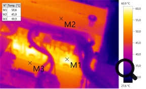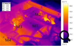 A l'aide d'une caméra thermique on mesure les températures aux différents points de l'ampli.