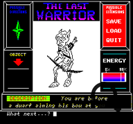 The funny point is that The Last Warrior have never been published in the French version. That version was archived only by me and the editors as LORICICIEL, COBRASOFT, IJK, INFOGRAMES, TANSOFT, PSS…etc. but I have seen the original version in French circulating on the net. I’m not looking for who have not respected the contract or gentlemen agreement but I'm only excited to recover my original version lost on damaged magnetic’s tape. I’ll be really happy to get it again. In case you have that version please don’t hesitate to contact me or send me it.