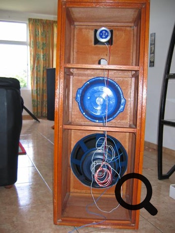 Mes enceintes MACH2 vieillissent très mal. Les suspensions en mousse des boomers se déchirent et un tweeter vient de rendre l’âme. Impossible de trouver des pièces de rechange adaptées. Novice en la matière on me conseil l’achat d’un boomer de 38cm version pro. Résultat pas de grave.