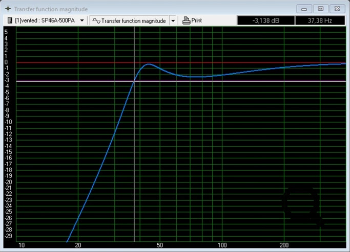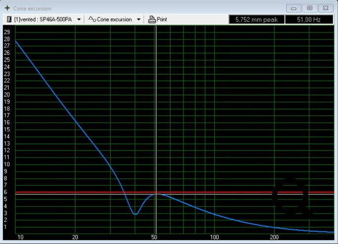 Attention tout de même en dessous de 35Hz car l’élongation monte en flèche. On peut rajouter un filtre coupe bas si problème dans certaines situations.