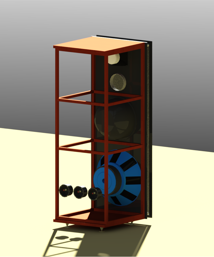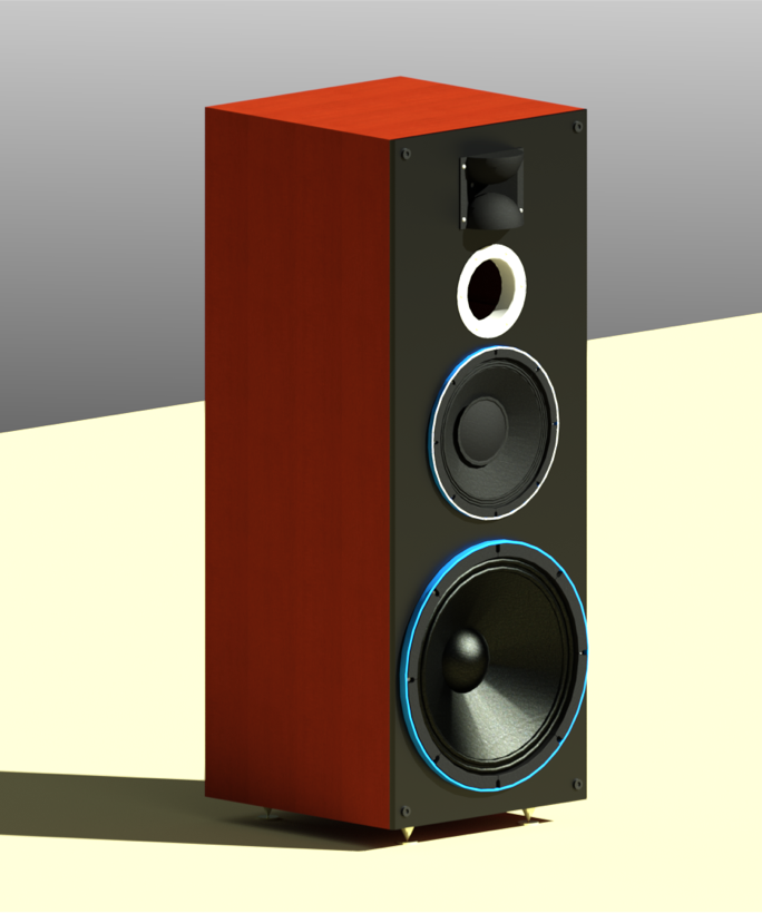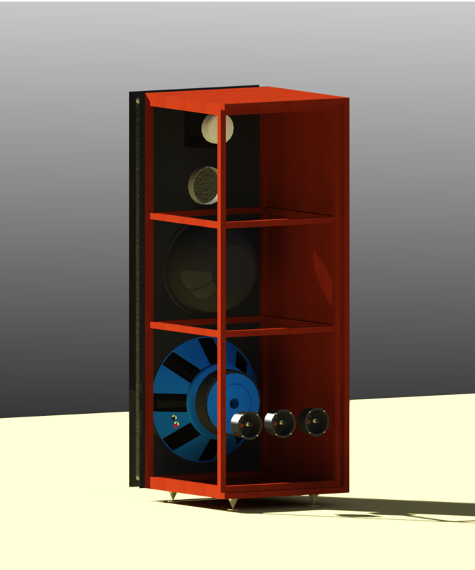 Le projet est finalement basé sur une enceinte 3 voix. L’ensemble est minutieusement modélisé en 3D afin de plus facilement se rendre compte du rendu final.