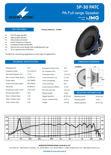 ■ Le diamètre de 30cm et 47Hz de fréquence de résonance afin de descendre relativement bas et couper au plus tôt.