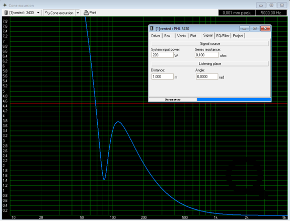 Attention tout de même en dessous de 33Hz car l’élongation monte en flèche. On peut rajouter un filtre coupe bas si problème dans certaines situations.