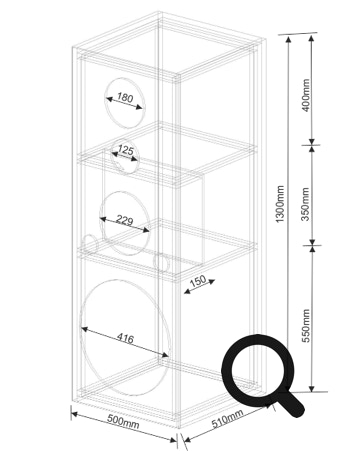 La caisse est la même que la version V1. Seul la charge médium oblige à revoir le volume restant pour les basses afin de modifier l'évent. 240L au lieur de 250L rien de bien méchant!