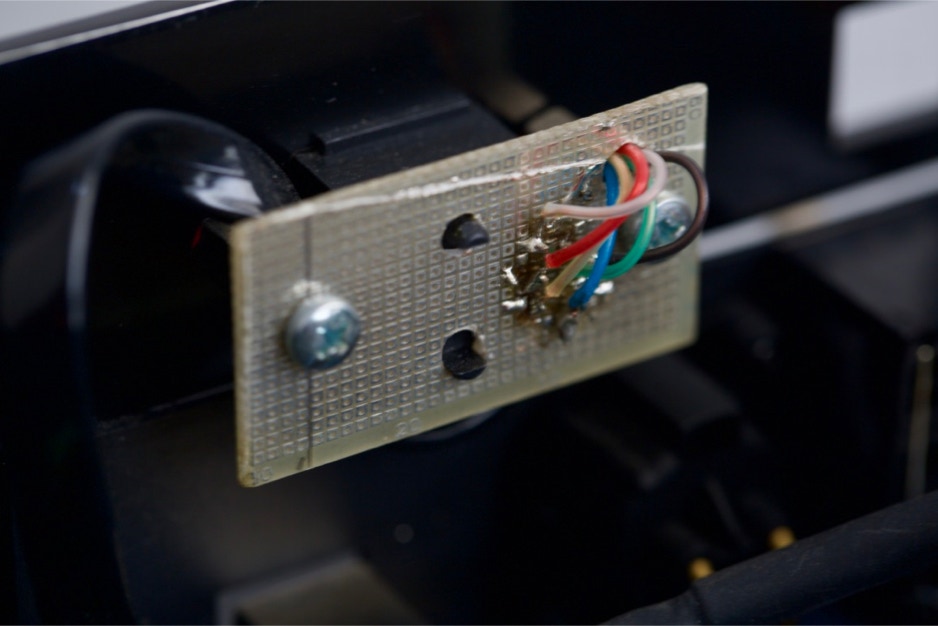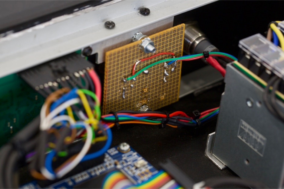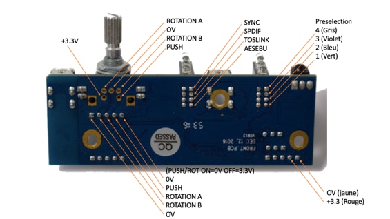 La face avant est récupérée intégralement avec tous ses organes depuis la version V2. On récupère ainsi le codeur optique, les boutons poussoirs, l'afficheur VFD, le bouton ON/OFF ainsi que le récepteur IR pour la télécommande.