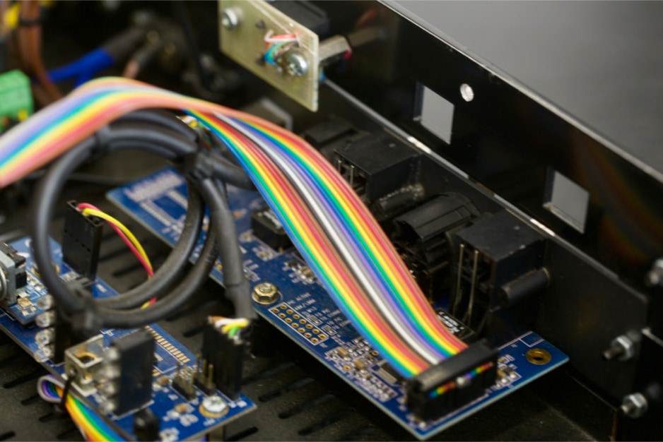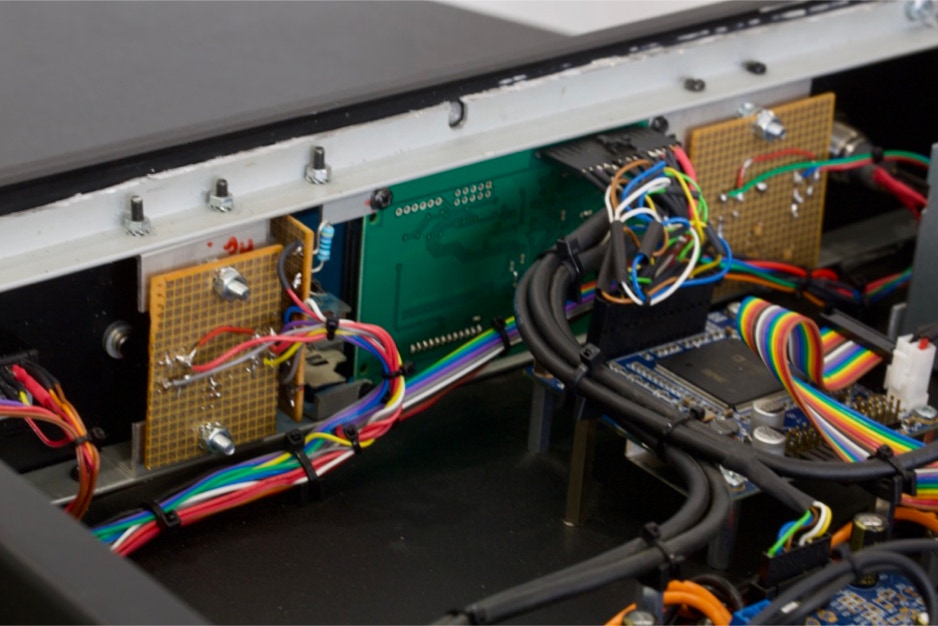La première particularité de cette carte est qu'elle sera ouverte aux évolutions. Un connecteur permettra l'extension d'autres cartes PGA ou DAC fonctionnant via un port SPI. La seconde est que sur cette carte principale les PGA peuvent recevoir un signal audio interne depuis les DAC ou externe depuis les connecteurs RCA.