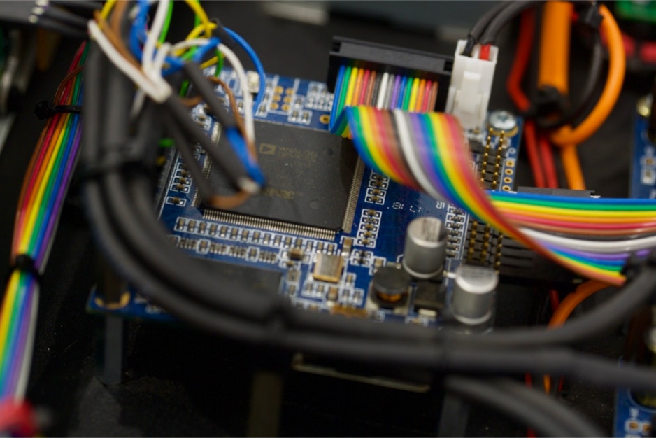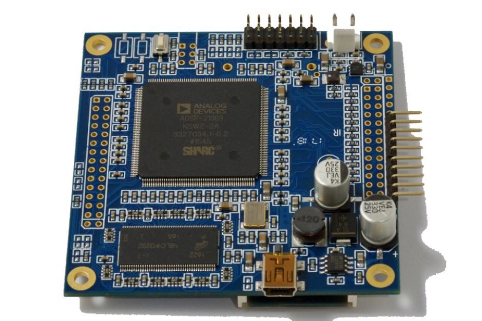 Le coeur du système est donc un DSP. Le module sélectionné est la carte MiniSharc en provenance de la société MiniDSP. Celle ci dispose d'un ADSP 21369 de Analog Device. 32/40 bit à virgule flottante et 2.4 GFlops de puissance de calcul. Il fait partie encore aujourd'hui des meilleurs référence du marché. Cette carte dispose d'une entrée et de 8 sorties au format I2S. Un plugin permet de parametrer toutes les fonction nécessaire via un ordinateur PC ou MAC.