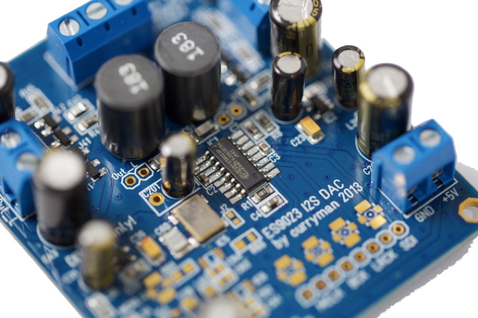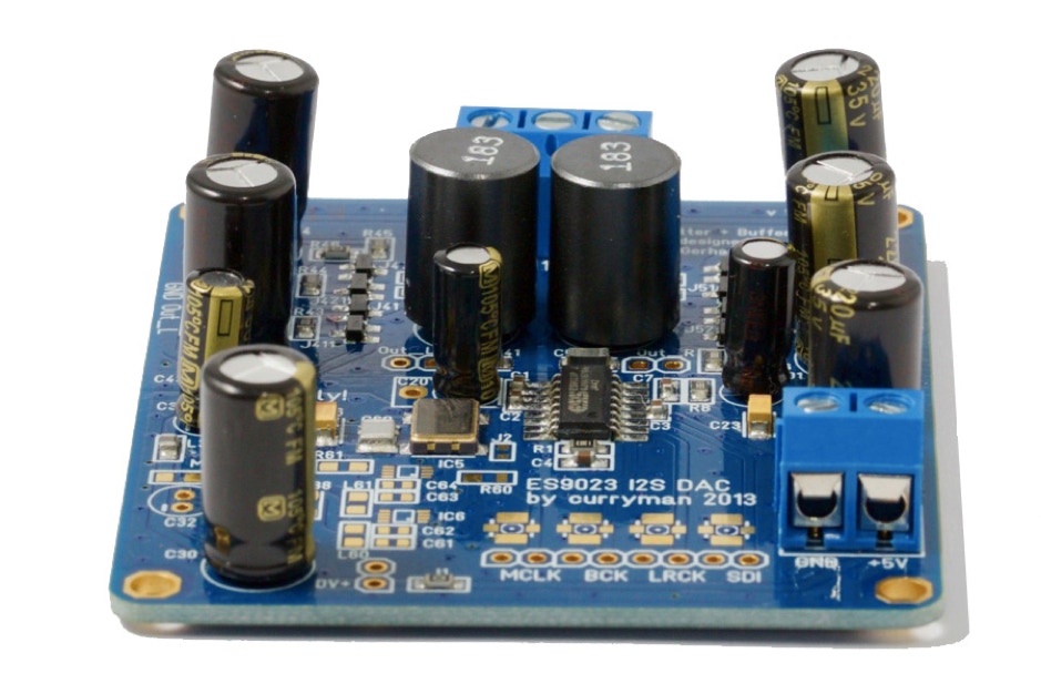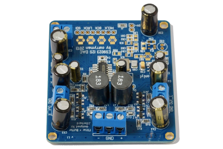 Dans un premier temps et afin de valider que l'ensemble fonctionne correctement il est décidé d'utiliser les DAC fournit par lMiniDSP soient les modules Curryman. Il sagit du DAC SABRE 9018 de la société ESS. Un circuit de très bien noté et qui a le vent en poupe depuis quelques temps dans le monde des audiopliles. Ensuite il sera toujours temps de les remplacer par un modele plus performant. De toutes manières et ecomparant le datasheet cela ne devrait pas pire que les AKM du DCX.