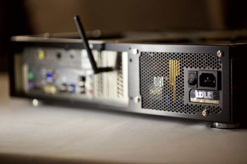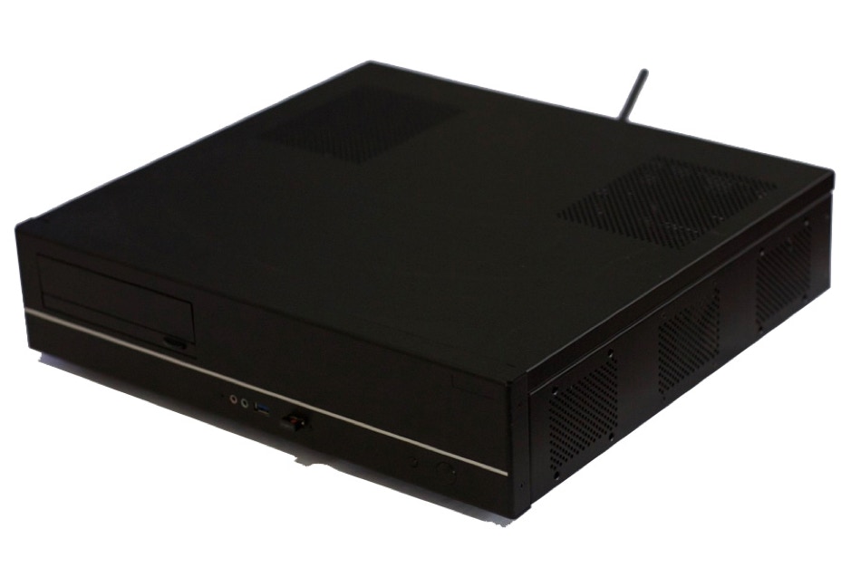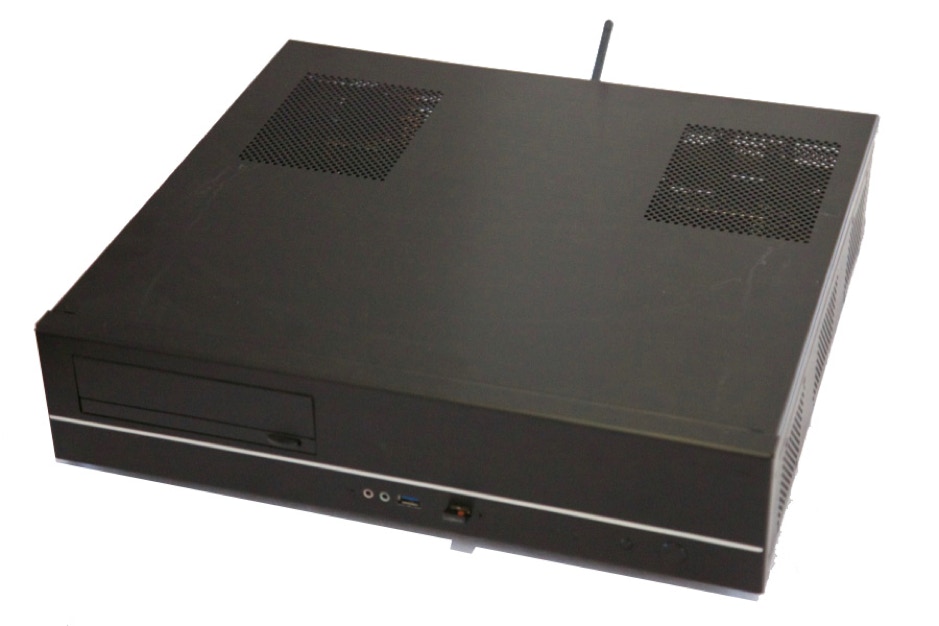 Le boitier est un LIAN Li PC-C37 Noir. Il ressemble plus à un élément HIFI qu’à un PC. La finition est parfaite en aluminium noir brossé. C’est l’élément le plus cher dans ce projet mais essentiel afin de conserver un design parfait. Il accepte des cartes mères au format MICRO ATX. Dispose d’un emplacement 5.25’’ pour le lecteur CD/DVD et 2 emplacement 3.5’’ pour les disques durs.