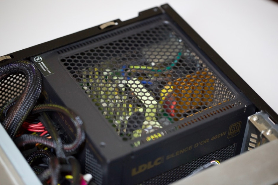 L’alimentation est une LDLC Silence d'or Quality Select Fanless 80PLUS Gold. 460W sont plus que suffisant et sans ventilateur c’est une garantie d’un silence d’or. On pourra alimenter autant de disque dur que le boitier pourra en recevoir. Un gros avantage est le connecteur 80PLUS avec tous les cordons fournit, je ne peux que conseiller cette alimentation avec un excellent rapport qualité prix.