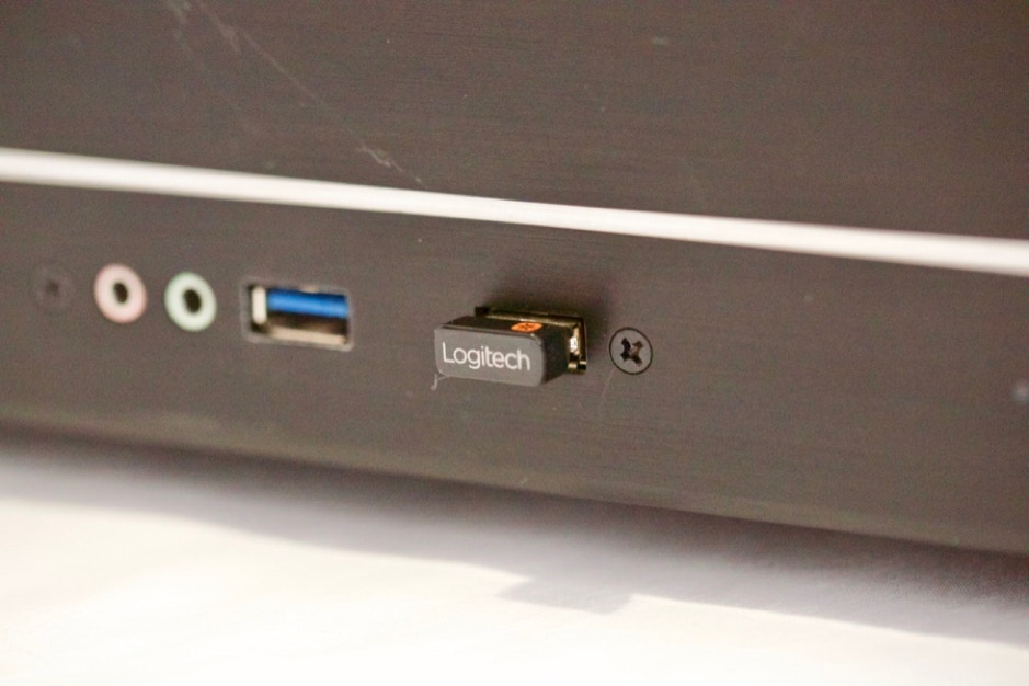 Le clavier est un Logitech Wireless Touch Keyboard K400 transmission par radio. C’est bien pratique pour ne pas se lever du canapé ou avoir un câble qui traverse la salle. Il dispose également d’un TOUCHPAD grand format ce qui remplace la souris. Un clavier fort agréable qui remplis bien sa fonction.