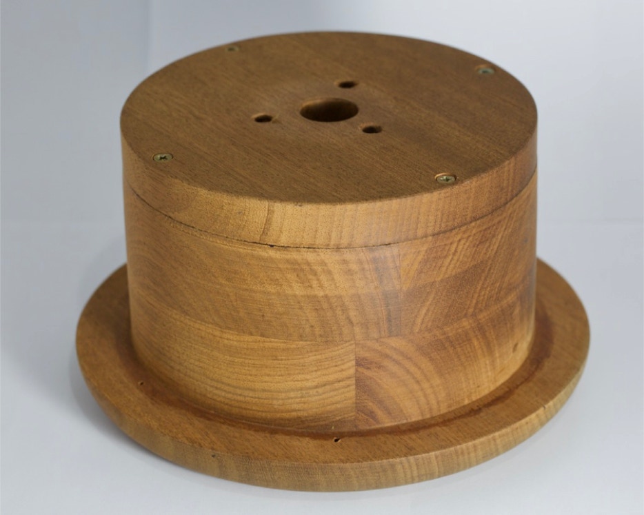 La caisse est la même de l'enceinte principale V1. La façade est modifiée. Provisoirement pour les essais une planche de contre plaqué vient boucher l'emplacement de l'ancien médium MONACOR SP-30 PATC en diamètre 300mm afin de pouvoir monter le nouveau PHL 3431 en diamètre 250mm.