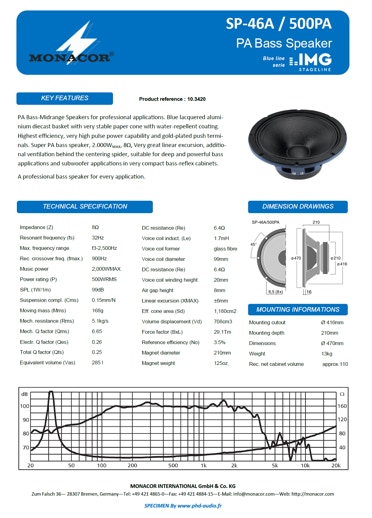■ Le facteur de force élevé avec un BL de 15,6 ainsi qu’une masse mobile faible de 35g.