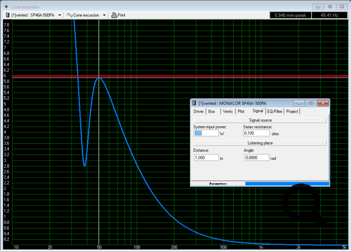 Attention tout de même en dessous de 33Hz car l’élongation monte en flèche. On peut rajouter un filtre coupe bas si problème dans certaines situations.