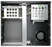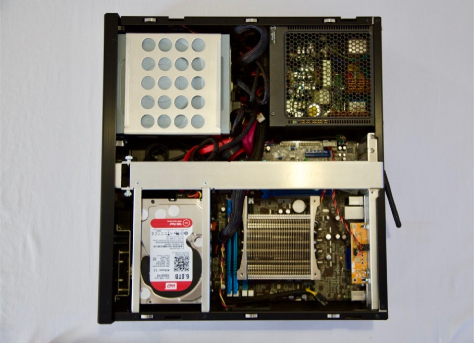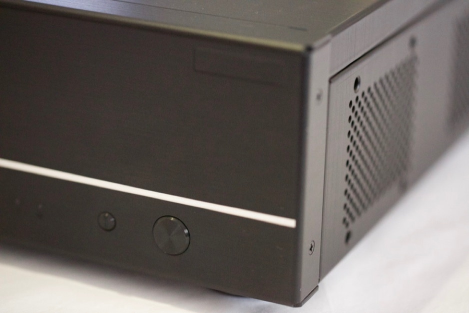 Le boitier est un LIAN Li PC-C37 Noir. Il ressemble plus à un élément HIFI qu’à un PC. La finition est parfaite en aluminium noir brossé. C’est l’élément le plus cher dans ce projet mais essentiel afin de conserver un design parfait. Il accepte des cartes mères au format MICRO ATX. Dispose d’un emplacement 5.25’’ pour le lecteur CD/DVD et 2 emplacement 3.5’’ pour les disques durs.