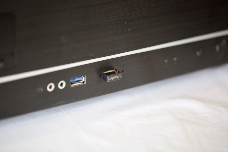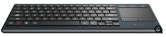 Le clavier est un Logitech Wireless Touch Keyboard K400 transmission par radio. C’est bien pratique pour ne pas se lever du canapé ou avoir un câble qui traverse la salle. Il dispose également d’un TOUCHPAD grand format ce qui remplace la souris. Un clavier fort agréable qui remplis bien sa fonction.