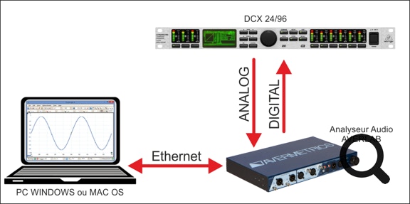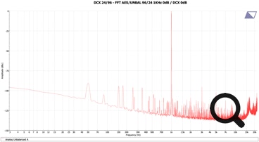 L'entrée numérique du DCX est au standard AES/EBU, une norme pour les professionnels, alors que nos sources habituelle (domestiques) sont au standard SPDIF. Nous avons tout entendu à ce sujet et plus principalement qu'il fallait convertir le SPDIF en AES/EBU pour que le DCX fonctionne correctement. Et bien d'après les mesures ci dessous vous pourrez constater par vous même qu'il s'agit plus d'un mythe que d'une réalité. L'usage d'un convertisseur, SRC24/96 ou autre n'est pas d'une absolue nécessité. Si ce n'est pour d'autre fonctions pas celle de convertir le format.