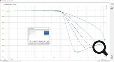 On peut noter les distorsions infligées par le filtre après la fréquence de coupure et qui augmentent proportionnellement avec l'atténuation du filtre.