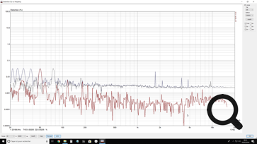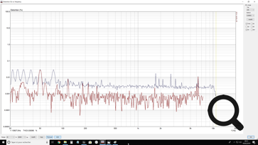 Concernant la distorsion on note qu’en dessous de -80dB elle est très élevé mais linéaire jusqu’à 0dB avec -80dB de distorsion soit environ 0.01% ce qui est relativement faible mais pas non plus extraordinaire.