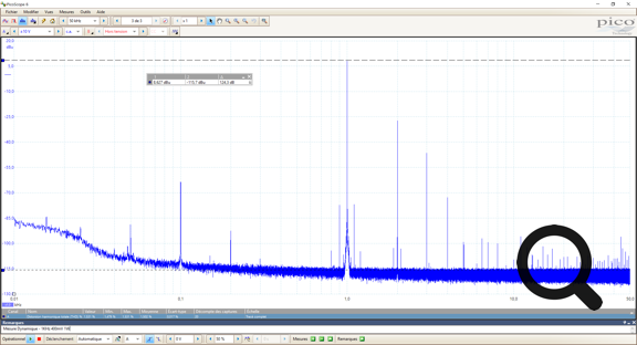 La dynamique est en amélioration. On obtient à présent plus de 120dB à mi puissance. Une belle performance !