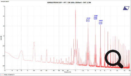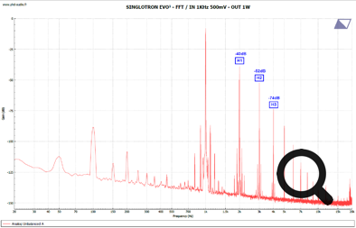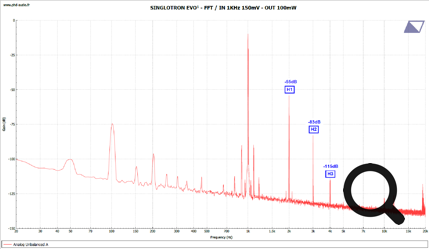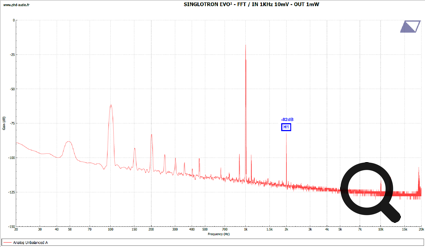 Voici enfin les mesures du SINGLOTRON dans sa version d’évolution N°1. Pour rappel les améliorations portent sur l’alimentation, le découplage de la platine ampli, le remplacement du condensateur d’entrée et d’un convertisseur PWM/tension continue pour la régulation des ventilateurs et pour finir une augmentation du courant de polarisation. Pour les détails veuillez visiter la page SINGLOTRON EVO1.