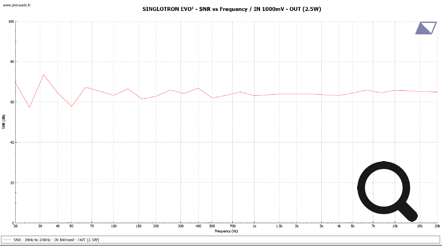 Toujours en liaison directe avec la réduction du bruit il est évident que le rapport signal sur bruit soit forcément en amélioration. On gagne près de 20dB en moyenne sur majeure partie de la plage de puissance.