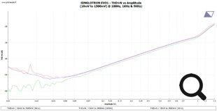 Concernant la THD pure n’a pas de différence flagrante. Cela peut paraître surprenant mais pas tant que cela du fait que le bruit a fortement diminué sans influencer la distorsion. Observons plutôt la THD+N.