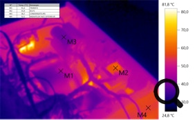 Au niveau température pas de surprise en soit néanmoins il faut souligner que l’augmentation du courant de polarisation de 2A à 2.2A induit une légère augmentation de la température du transformateur ainsi que des transistors.