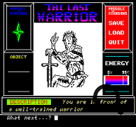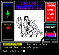 The funny point is that The Last Warrior have never been published in the French version. That version was archived only by me and the editors as LORICICIEL, COBRASOFT, IJK, INFOGRAMES, TANSOFT, PSS…etc. but I have seen the original version in French circulating on the net. I’m not looking for who have not respected the contract or gentlemen agreement but I'm only excited to recover my original version lost on damaged magnetic’s tape. I’ll be really happy to get it again. In case you have that version please don’t hesitate to contact me or send me it.