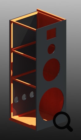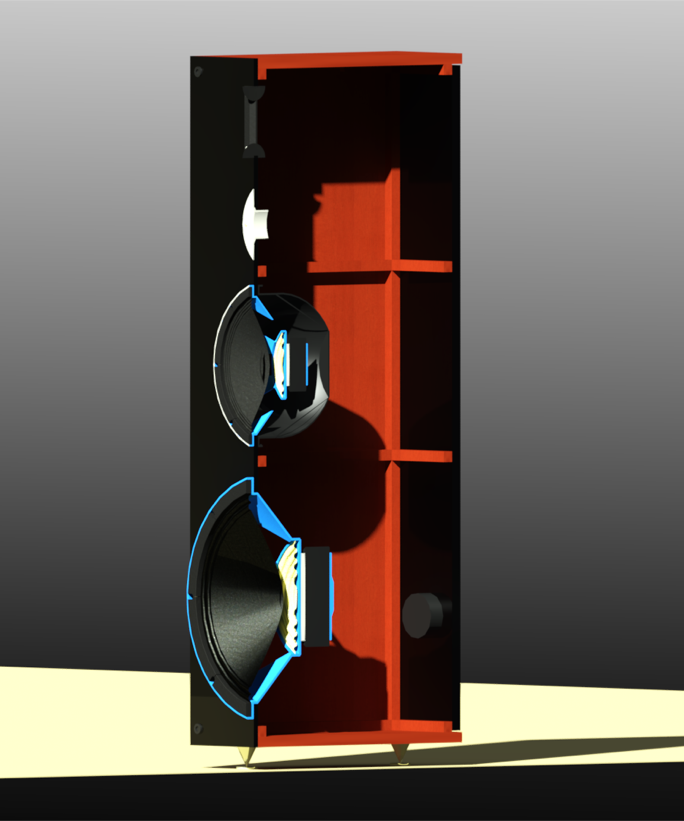 Le projet est finalement basé sur une enceinte 3 voix. L’ensemble est minutieusement modélisé en 3D afin de plus facilement se rendre compte du rendu final.