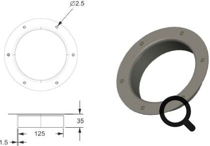 Etant difficil de trouver un évent de grand diamètre je décide d'en fabrique un avec tube inox de 1.5mm d'épaisseur et soudé à l'argon sur une bride à collet. Quelques perçages pour la fixation, un bon polissage et c'est finit.