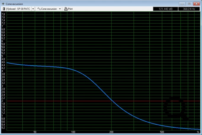 Attention tout de même en dessous de 35Hz car l’élongation monte en flèche. On peut rajouter un filtre coupe bas si problème dans certaines situations.