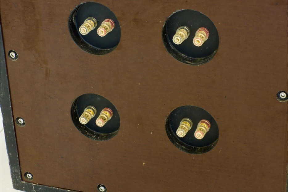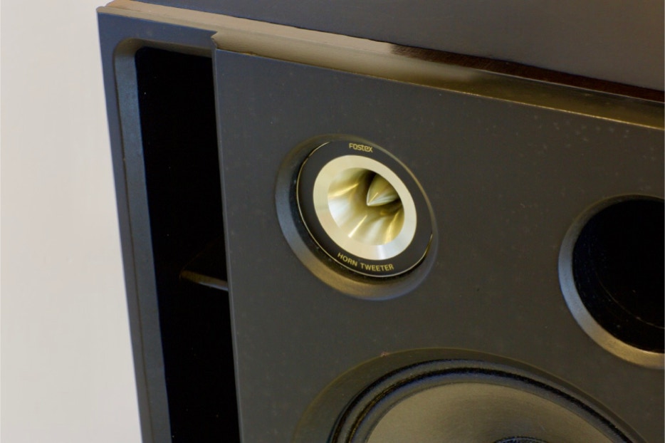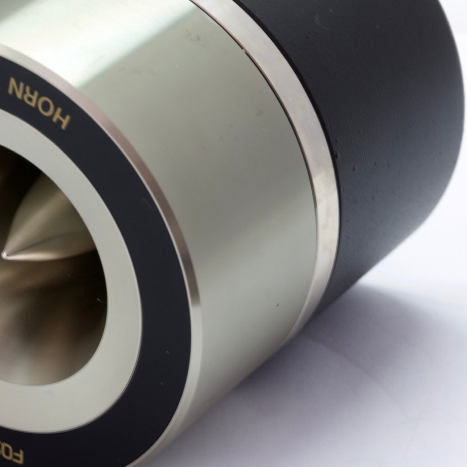 Les tweeters sont fixés par l'intérieur à l'aide d'une bride en plastique confectionnée sur mesure. Les pieds sont réalisés en plastique tourné et fixés directement dans la caisse à l'aide de vis. Des bagues en caoutchouc assurent l'étanchéité ainsi que l'amortissement des vibrations.