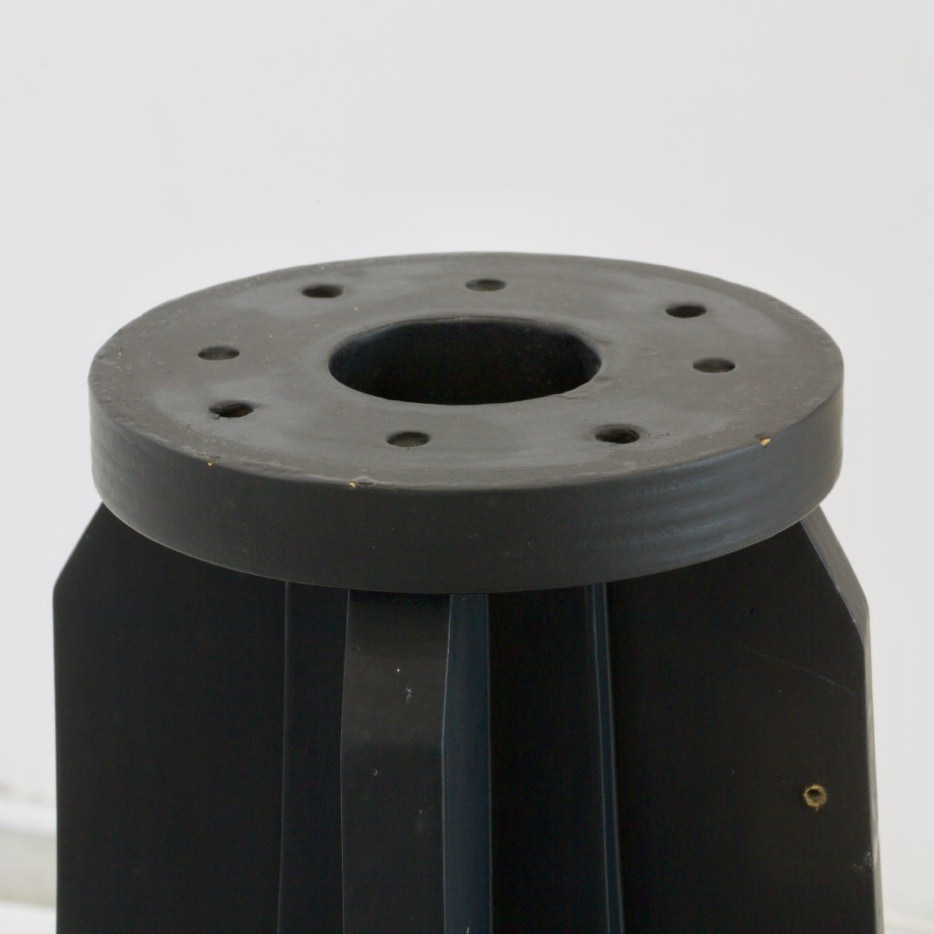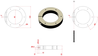 La pièce d'adaptation entre le pavillon et la compression a un forme particulière. Extérieurement il ne s'agit que d'une bride de 150mm de diamètre et 25mm d'épaisseur avec les 4 trous de fixation pour la compression. Elle est vissée et collé sur le pavillon.
