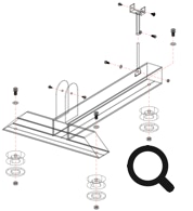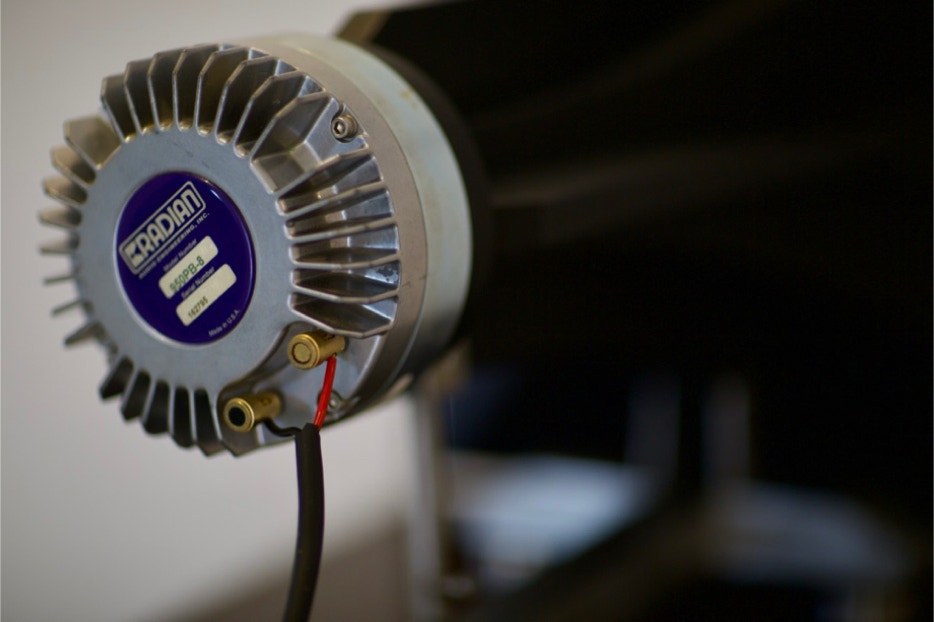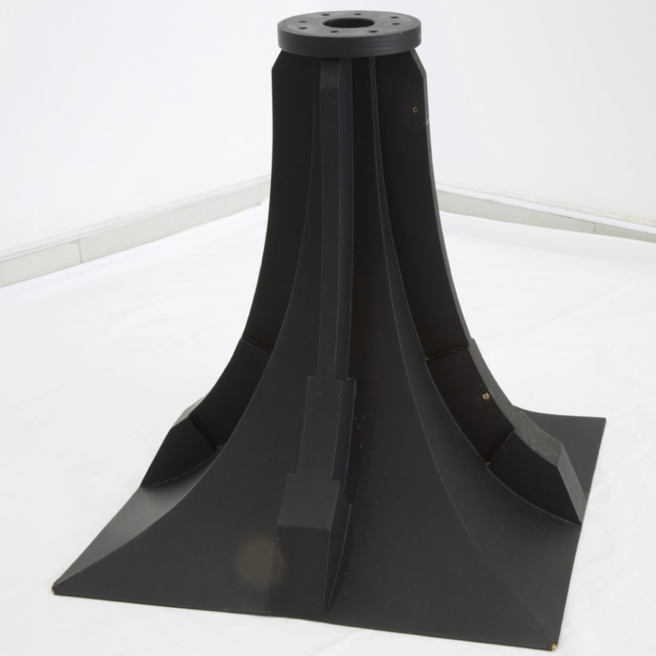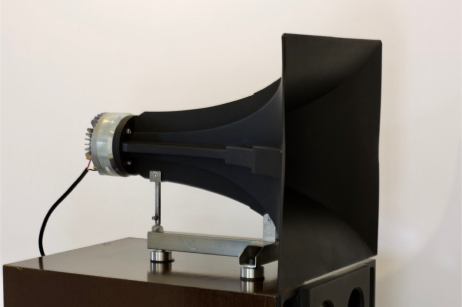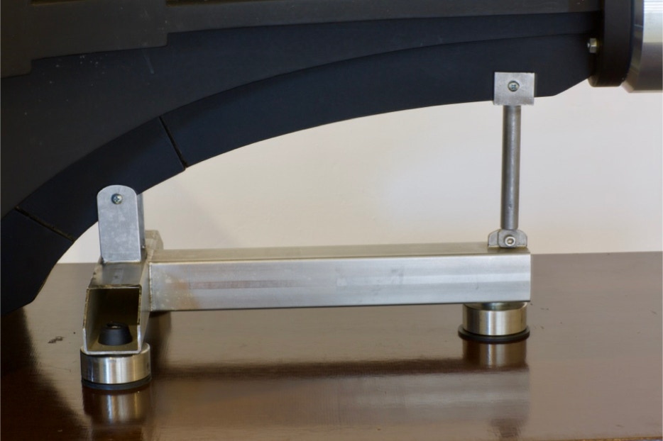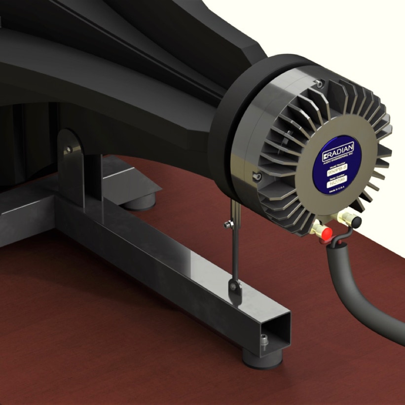 Un support en tube inox soudé à l'argon (TIG) est réalisé afin de supporter les pavillons sur les enceintes. Ceux ci sont fixé solidement et toutes les liaisons sont rigoureusement isolés avec des pièces en caoutchouc afin de limiter les vibrations