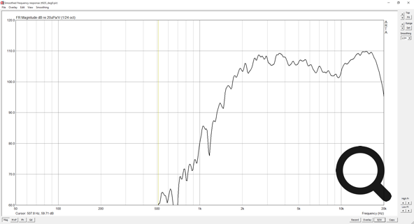 Les compressons avec leurs pavillons descendent sans problème en dessous des 500Hz. Les aigues commencent à perdre en amplitude à partir 5KHz mais se maintiennent à un bon niveau jusqu'à 10KHz. Le relais par un tweeter est inévitable.