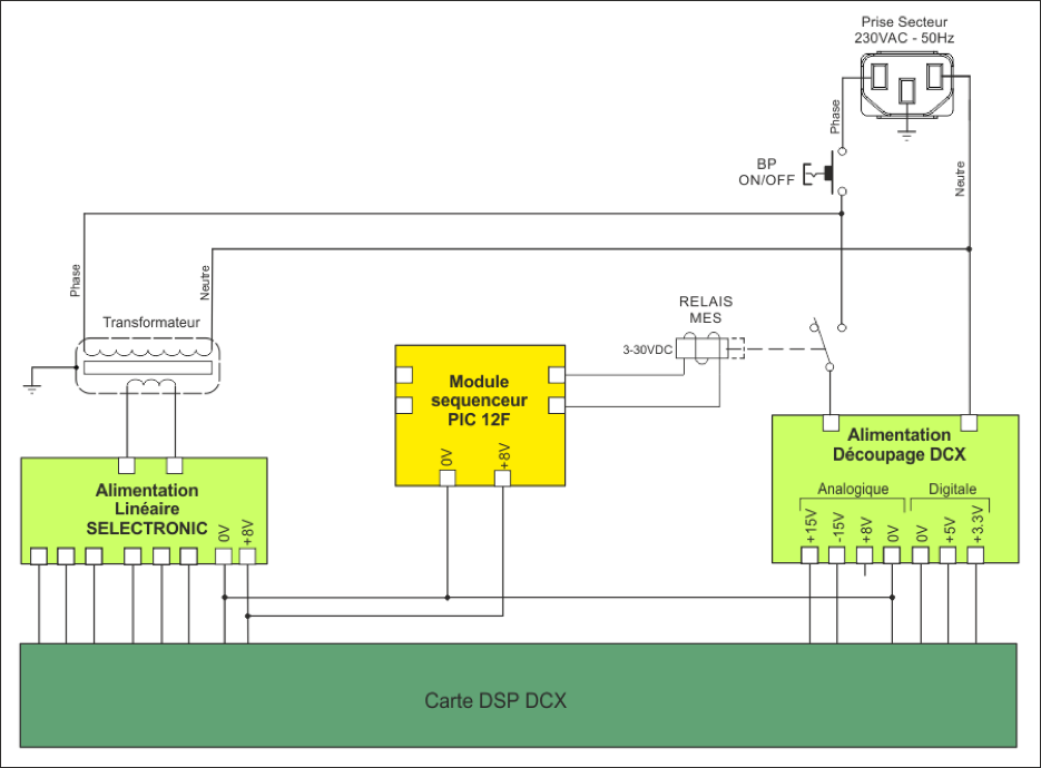 Pour pallier à ce défaut il suffit de temporiser le démarrage de l’alimentation à découpage. Il faut que l’alimentation linéaire s’établisse avant celle à découpage. J’avais dans les cartons un petit montage à base d’un microcontrôleur me permettant d’effectuer à moindre coup ce séquencement.