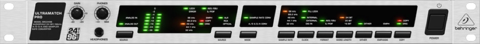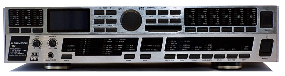Un autre incontournable est très certainement le SRC24/96. Celui-ci sert de sélecteur de source et permet également de recevoir n'importe quelle source numérique ou analogique et de la replacer dans le format du DCX en AES/EBU 24 bits et 96KHz. Il est équipé de convertisseur digital/analogique mais aussi d'un SRC "Sample Rate Converter". Ses qualités en analogique sont discutable mais certainement pas en tout numérique.